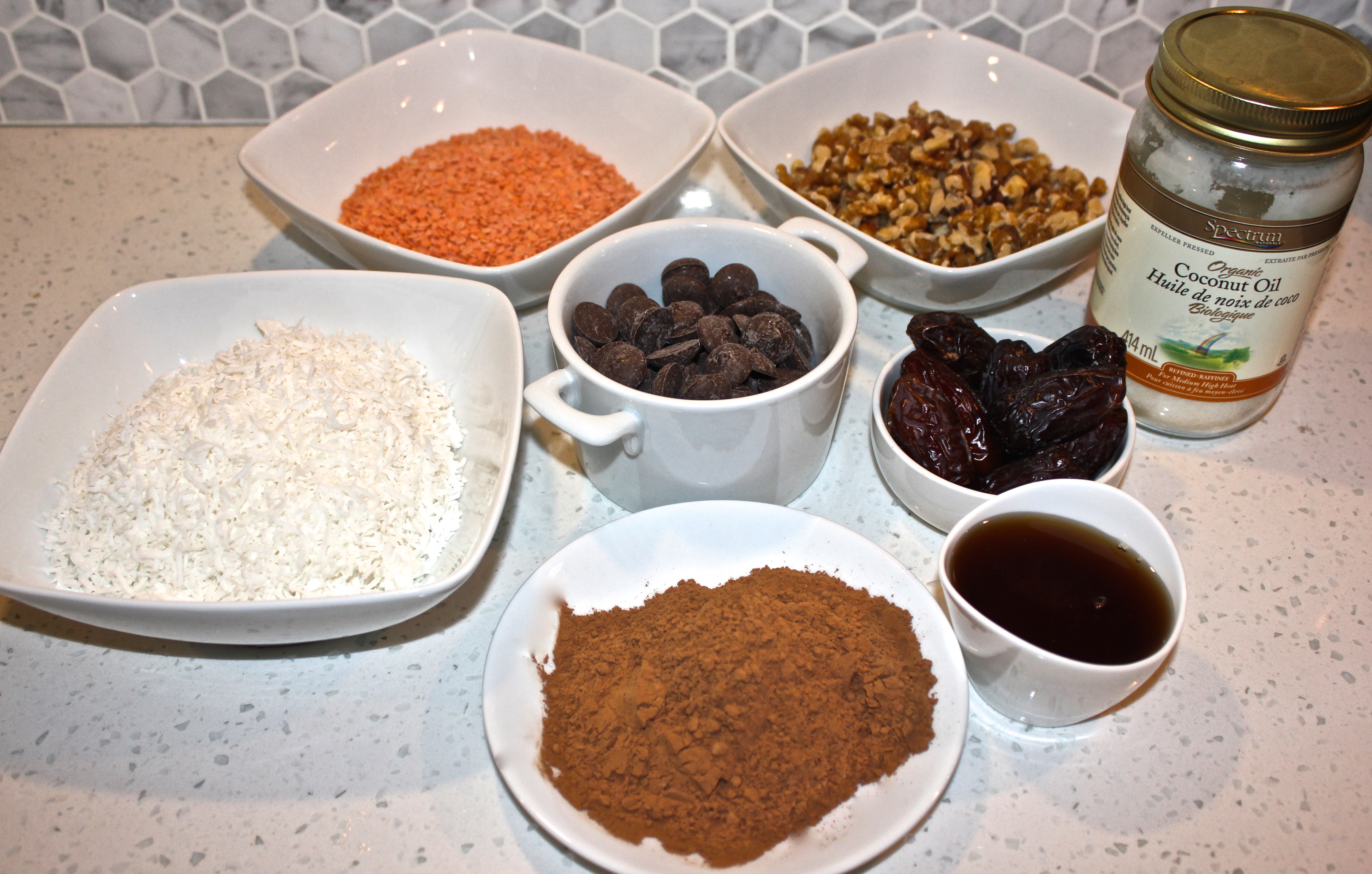 I was pleasantly surprised with this alternative. I dig that this recipe is not as sweet as the original Nanaimo bar, yet it fills all my top requirements in a dessert. Coconut, Nuts, Chocolate. The addition of lentils packs this dessert with protein, iron, zinc and copper. I am telling you it is well worth the try!